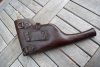 Originale Pistolentasche für C96 Modell 1912 geändert für Polizei mit 10 cm Lauf und fester Kimme +++ Hersteller Hans Römer Neu-Ulm 1915 +++ die Nähte alle fest +++ das Leder ist steif aber nicht hart, die C96 sitzt sehr stramm in der Tasche +++ die Tasche ist einwandfrei mit Gebrauchspuren und guter bis sehr guter Allgemeinzustand +++ siehe dazu die Bilder +++
