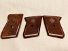 Braune Kunststoffgriffe passend für Röhm-Gaswaffen. Für Modell RG 9 und eine rechte Griffschale RG 800, die nie verwendet wurden, liegen schon lange im Schrank.