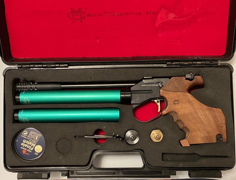 Schweizer Präzision: Matchpistole Morini CM 162E elektronischer Abzug, Griffgröße M, verstellbar, mit neuem Batteriepack und Service von 12/25 bei Gehmann. Alle Dichtungen neu, gereinigt und überprüft, somit technisch neuwertig. Die 2 Kartuschen sind ohne TÜV. Schöner, wenig geschossener Zustand. -siehe Bilder- Privatverkauf im Namen und Auftrag eines Freundes.