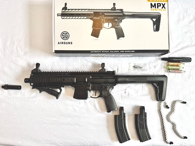 Ich verkaufe hier meine SIG SAUER MPX, in 4,5mm Diabolo, inklusive , Schalldämpferadapter, 2 Magazine, taktischer Vordergriff, und zusätzlich 2 Ketten a 30Schuss für die Magazine , CO2 Adapter für eine 12g Kartusche + 3x12g Kartuschen, seitliche und untere Picatinnyschiene aus Alu, FlipUp Visierung. Neuwert rund 350€.