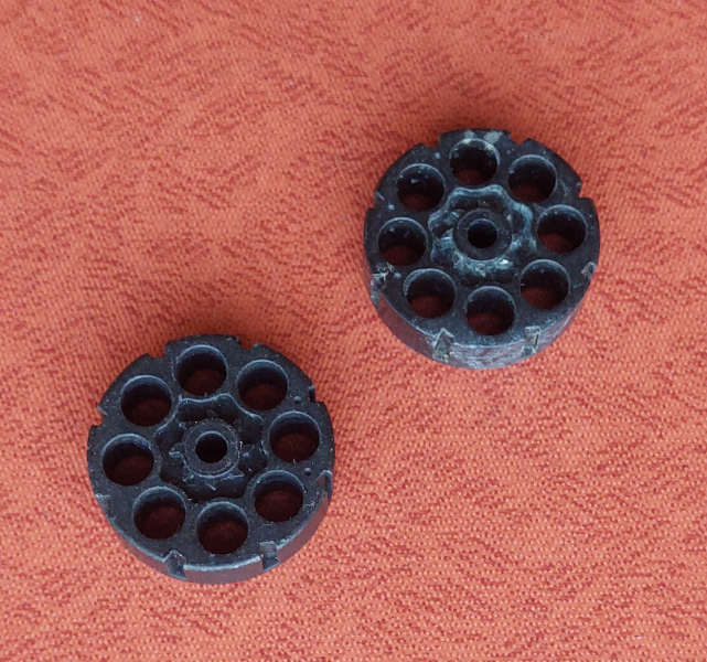 Zwei Trommelmagazine für CO²-Pistolen von "Röhm" - Twinmaster / Kal.: 4,5mm / wenig gebraucht, guter Gesamtzustand / der Versand ins EU-Ausland kostet ca. 17,- € /