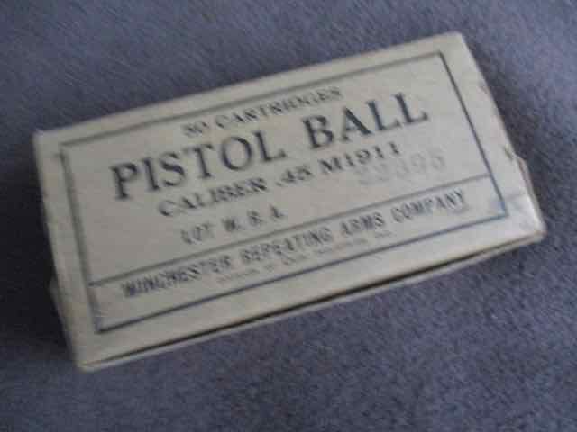 Schachtel, vollständig, Pistol Ball, Caliber .45 M1911, Lot W.R.A, Winchester. Kein Internationaler Versand.