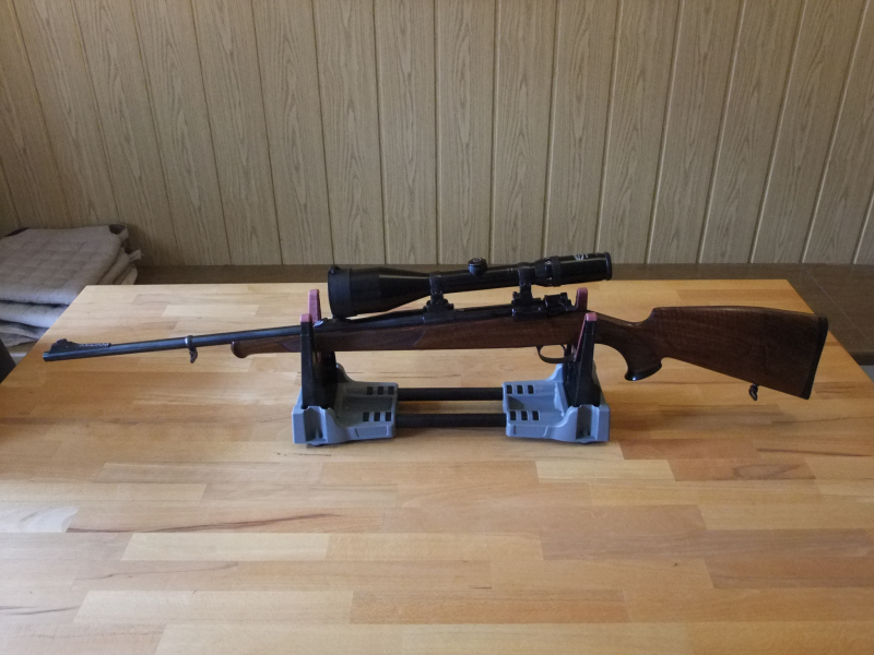 Custom Mauser mit DWM System Ferlacher Bauart in 243 Win mit S&B 2,5-10x50 Abs.4. Modifizierter Sicherung und Rückstecher. Aufgesuchtes Schaftholz mit Bayrische Backe und Top Schuss Leistung.