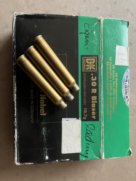 Angeboten werden Hülsen zum Wiederladen, ob die Hülsen schon einmal geladen wurden, kann ich nicht sagen, deshalb Startpreis ein Euro. Es sind 20 Stück 30 R - Blaser von RWS, 30 Stück 5,6x57 von RWS und HP, 70 Stück 7x57R von RWS und GECO. Das ist ein Privatverkauf, keine Garantie oder Rücknahme. Die Bilder sind Bestandteil der Auktion.