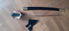 Ein ganz toller Entersäbel, die Kombination einer Windlass-Klinge aus 1065 Kohlenstoffstahl mit dem Gefäß eines Hanwei-Broadswords. Mit abgebildeter Lederscheide und Trageschlaufe aus Echtleder. Seiner Zeit erworben von Heiko Große, dem Leiter der Broadsword Academy Germany. Wirklich ein besonderes, äußerst führiges und insgesamt einfach beeindruckendes Stück, das ich nur ungern wieder abgebe. Die Klinge ist steif und dennoch flexibel, das Schwert mit ca. 1330 g Gewicht und einem Balancepunkt von ca. 6 cm vom Parier äußerst führig. Die Klinge verjüngt sich von 5,7 mm am Korb auf 2,9 mm an der Spitze. Ein hervorragendes Kampfschwert und definitiv Schnittest-geeignet. Ich habe den Griff mit Tennisgriffbändern umwickelt, diese können problem- und rückstandslos entfernt werden. Allerdings verbessern sie die Handhabung, da die Rochenhaut des Hanwei-Griffs ohne Handschuhe auf Dauer doch etwas unangenehm werden kann. Ich würde sie für den Käufer daher noch dranlassen. Die Klingenlänge beträgt 65 cm, die Gesamtlänge des Säbels ohne Scheide 81 cm.