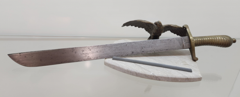 Gebe hier heute für Sammler ein schönes preussisches Faschinenmesser Model M1787 ab. Das Faschinenmesser ist in einem tollen altersbedingeten Zustand. Hersteller sollte WKC Solingen sein, wenn ich es richtig interpretiere. Auf der zweiten Siete der Unschärfe ist die Krone und das Monogram FR für Fridericus Rex. Ein netter Eguner hat mich darauf aufmerksam gemacht, dass das Monogramm eher als JR für Johann Rex stehen kann. Was dann dazu führen würde das es sich um ein M1845 Sachsen handelt. Das altdeutsche F und J sind leider recht ähnlich. Bitte machen Sie sich selber ein Bild vom Faschinenmesser. Schönes zeitgenösisches Sammlerobjekt. Zugreifen. Schauen Sie sich bitte die Bilder an. Beachten Sie auch meine anderen Angebote. Wenn Sie Fragen haben oder mehr Bilder wünschen melden Sie sich bitte rechtzeitig vor Auktionsende. Verkauf nur an Personen ab 18 Jahren. Privatverkauf ohne Garantie und Rücknahme. Käufer trägt das Versandrisiko.