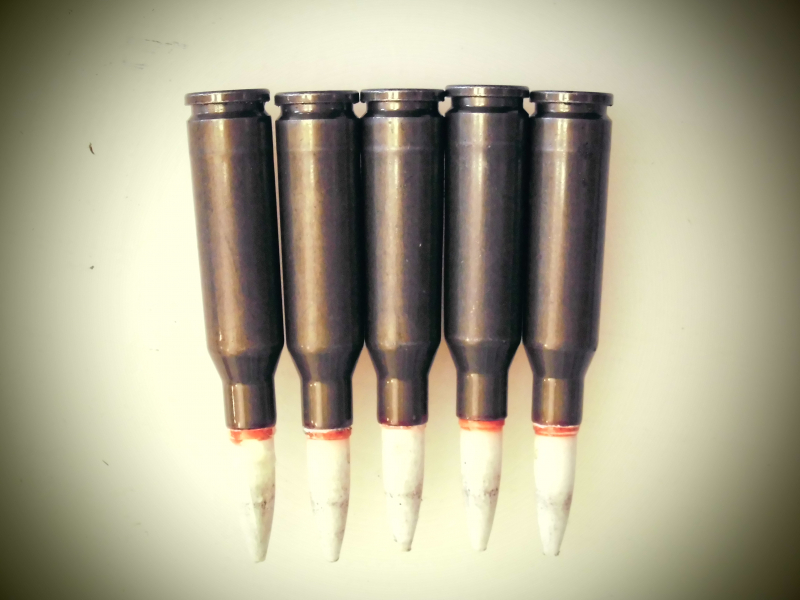 Sammlungsauflösung.Moin Sie bieten auf 5 Stück Kalaschnikow 5x39 Manöver Patr. mit Klapperkugel. Stahlhülse mit Papiergesch.