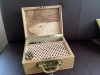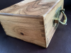 De Koffer ist aus deutscher Nuss, in Handarbeit angefertigt. Die Zinken sind Schwalbenschwänze. Der Beschlag ist ein alter Griff und sehr massiv.