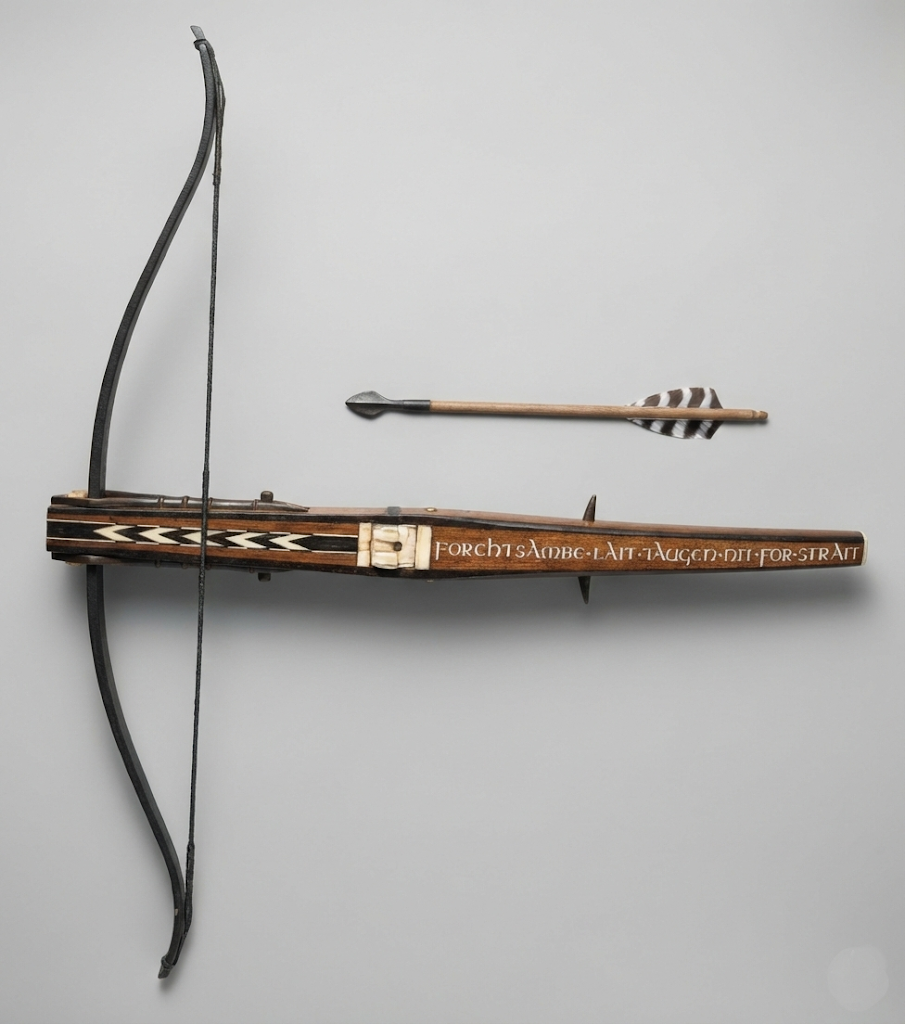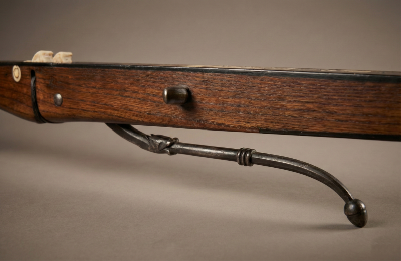 Die Armbrust ist aus Holz mit geschmiedeten Elementen.