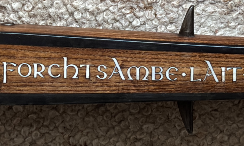 Im Holzschaft ist folgender Text als Bein- (???) bzw. Kunststoff- (???) einlage:
