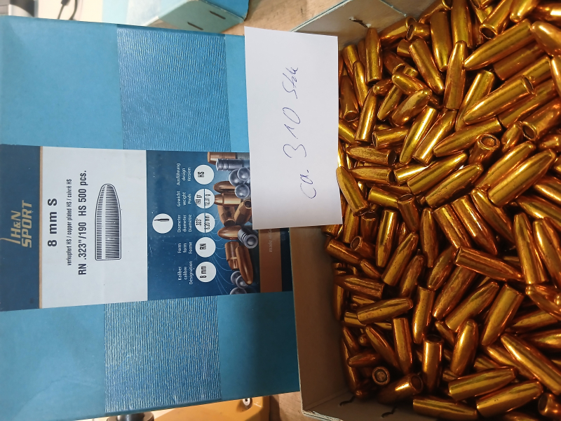 Zum Verkauf stehen o.g. Geschosse in geöffneter OVP. Ca 310 Stück- gewogen, nicht gezählt. Also bitte nicht reklamieren, wenn es nur 308 oder sogar 312 sind ;-)