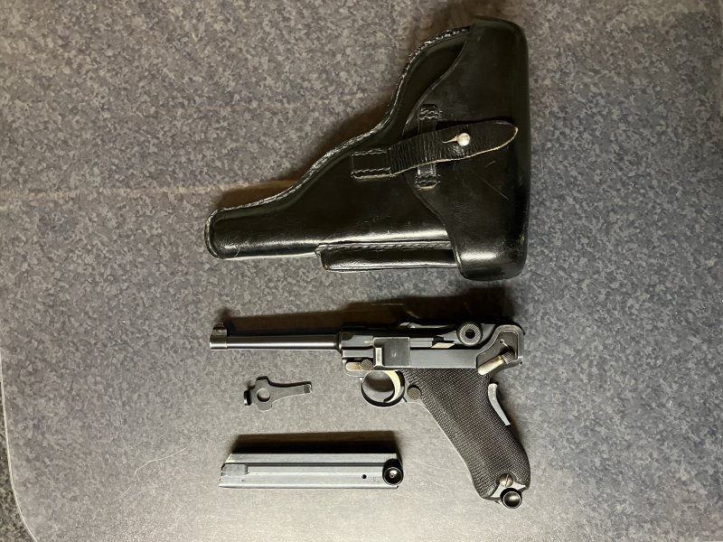 DWM 1906 american eagle 7,65 Parabellum. Waffe, Holster, 2. Magazin & Schlüssel.