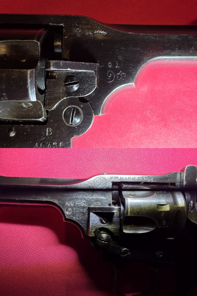 Bemerkenswert ist, dass dieser Webley neben den üblichen britischen Beschusszeichen auch mit einem Davidstern gekennzeichnet ist, was annehmen lässt, dass er zum Kontigent der israelischen Armee gehörte. Dafür spricht auch der höhere Prüfdruck von 4 Tonnen je Quadratzoll, im Gegensatz zu den sonst üblichen 3,5 Tonnen. Typisch war das für Exportwaffen oder Waffenlieferungen im Rahmen von Militärverträgen.