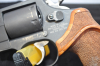 Cal. .357 Mag., Sechsschüssig. Dt. Beschuss. Geeignet für über 25 verschiedene Patronen im Kaliber 9 mm. Für Patronen mit Rand in jeder Trommelbohrung eine seitliche Haltefeder zur Fixierung. Mikrovisier mit roter Korneinlage. Schlossmechanik von S & W. SA/DA. Trommel aus Vanadiumstahl. Links am Rahmen Phillips & Rodgers-Firmierung mit Patent, rechts Logo.
