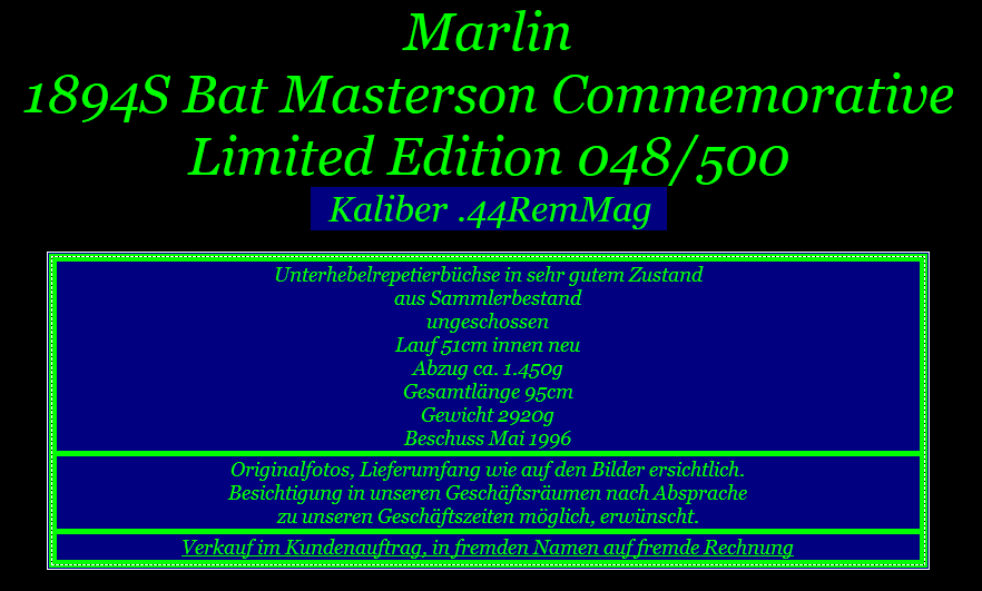 Marlin 1894S Bat Masterson Commemorative Liited Edition 048/500 Kaliber .44RemMag
