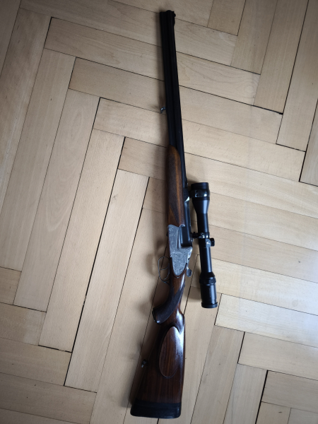 Zum Verkauf steht ein schöne Bockbüchsflinte aus Ferlach von Franz Sodia im Kaliber 7x57R, 16/70. Die BBF war 2023 zur Revision und befindet sich in einem einwandfreiem technischen Zustand. Auf einer Schwenkmontage ist ein Swarovski Habicht 1,5-6x42 montiert. Die Waffe wurde geführt und das Holz besitzt ein paar Gebrauchsspuren. Gesamtlänge der BBF beträgt 109cm. Von der Schaftkappe bis zum Okular 30,5cm. Von der Schaftkappe bis zum vorderen Abzug 38,5cm. Eine Besichtigung ist nach Absprache am Wochenende in 99423 möglich.