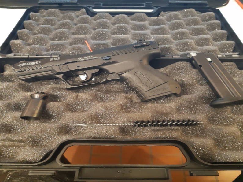 Verkaufe eine ungebrauchte Gas-Signal Pistole von Walther. Modell: P22 brüniert Kaliber: 9mm P.A.K. Magazin: 1 Zubehör: Abschussbecher für Signalmunition, Reinigungsbürste und original Waffenköffer vorhanden und wird mitgesandt. Neupreis der Waffe 159,90 €. Abgabe/Verkauf erst ab 18 Jahren. Bei Abholung gibt es noch 50 Schuss 9 mm P.A.K steel case Munition dazu. Abgabe nur mit Altersnachweis! Ich weise darauf hin, dass diese Waffe nicht in der Öffentlichkeit ohne einen kleinen Waffenschein geführt werden darf. In Waffenverbotszonen ist sie natürlich auch verboten! Altersnachweis erforderlich!!!