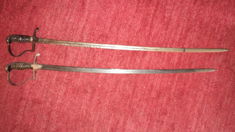 Hallo, verkaufe heute hier 2 Säbel ohne Scheide vermutlich Weltkrieg 2 Heer. Die Säbel haben starke Altersspuren. Kein Hersteller erkennbar. Da dies ein Privatverkauf ist übernehme ich keine Garantie und nehme die Säbel auch nicht zurück! Spaßbieter werden angezeigt!