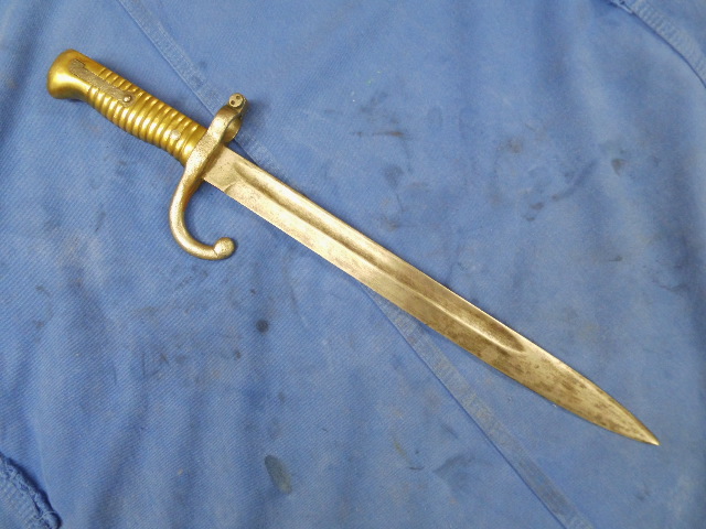 Hier ein Bajonett mit Messinggriff. Ich biete es als Bastlerstück an.