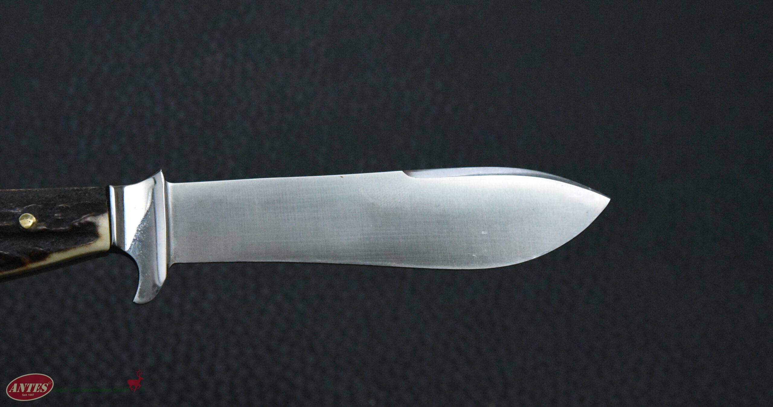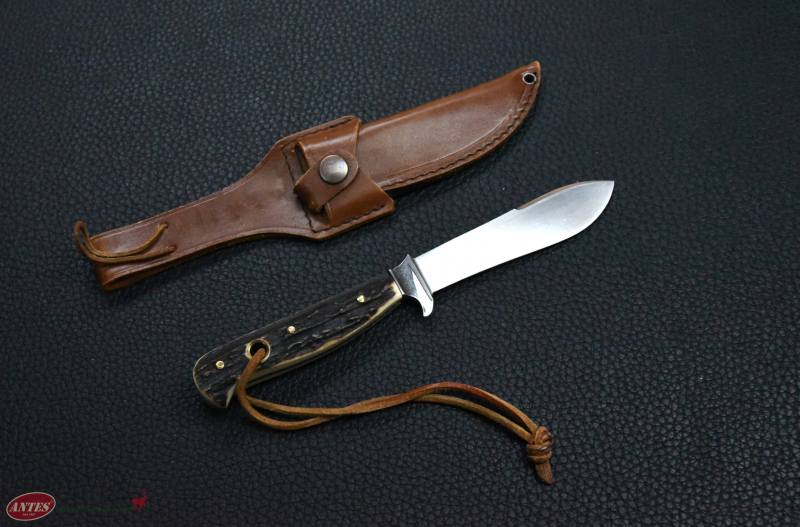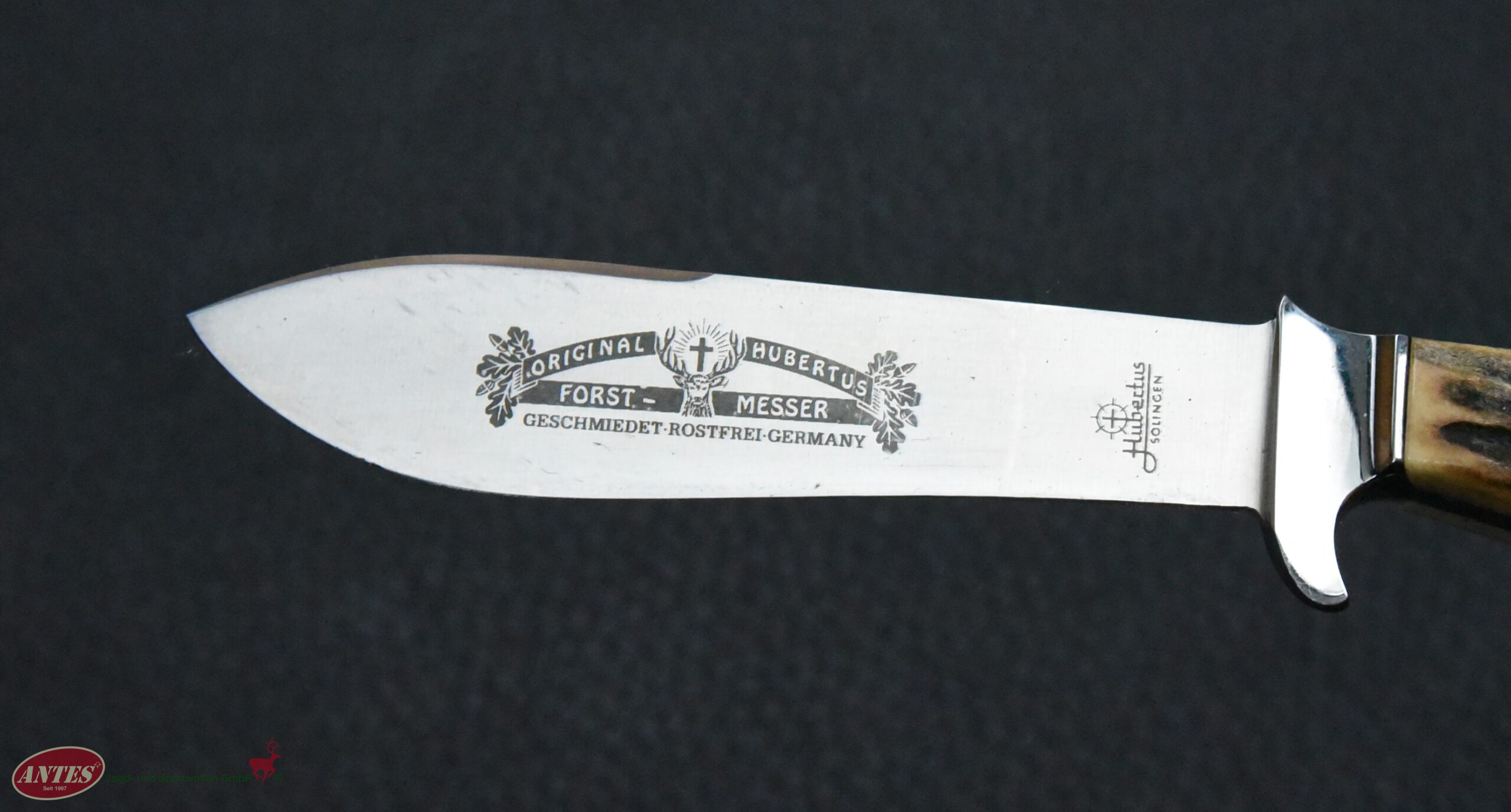 Hubertus Solingen Forstmesser mit Hirschhorn-Griffschalen und Lederscheide