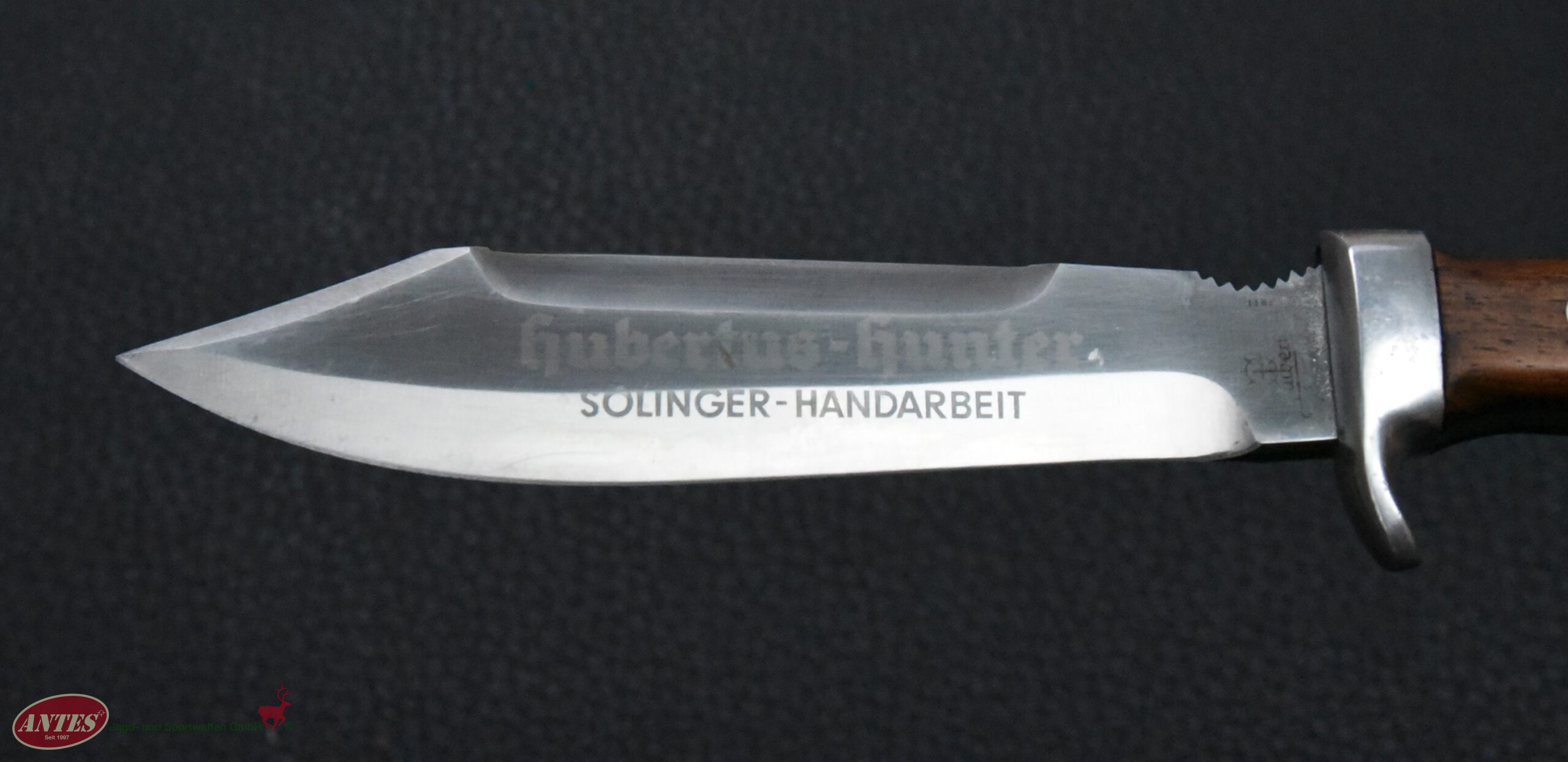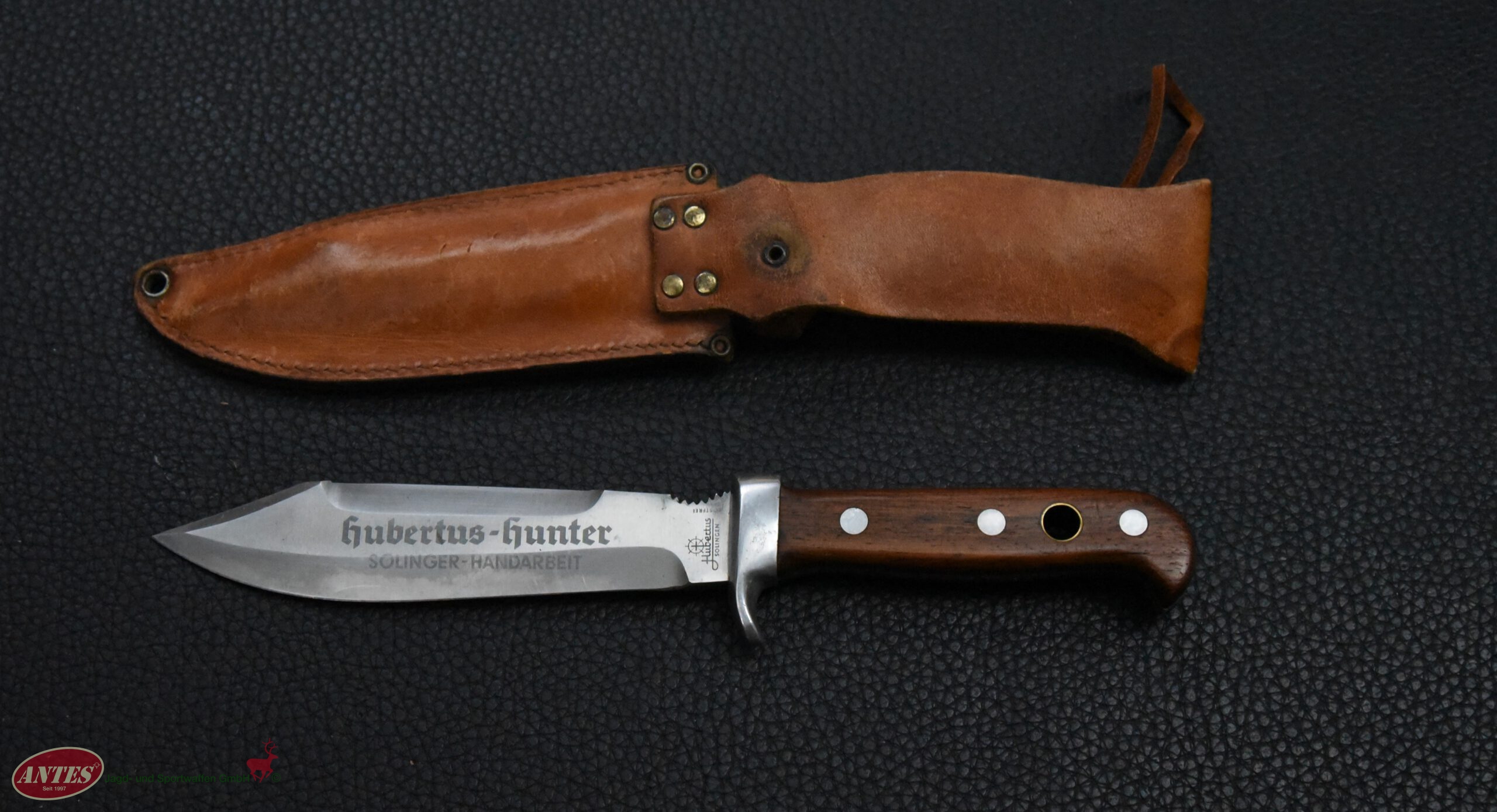 Hubertus Solingen Messer Hunter mit Hirschhorn-Griffschalen und Lederscheide