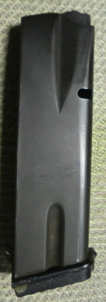 Besonderheit: das Magazin hat eine Auswurffeder, die am Rücken hervorsteht und beim Betätigen des Magazinknopfes das Magazin auswirft.