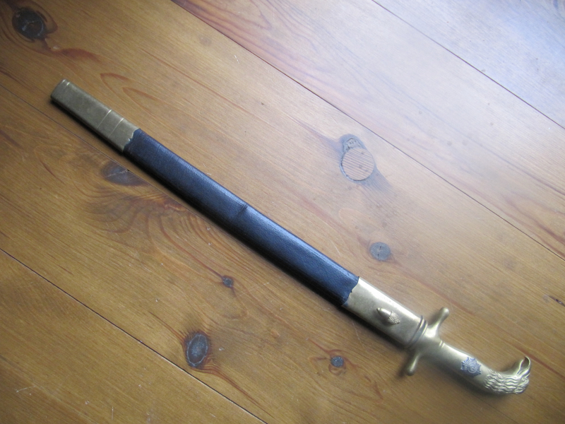 Blanke Klinge, Messinggriff mit aufgelegtem Gardestern, der Abschluss in Form eines Adlerkopfes, in Lederscheide mit Messingbeschlägen.Rest siehe Foto. EU versand 25 €