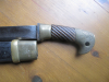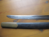 Schräg gerillter braunem Holzgriff, Lederscheide mit Messingbeschlägen, Gesamtlänge 102 cm, Klingenlänge 93 cm. Rest siehe Foto. EU versand 25 €