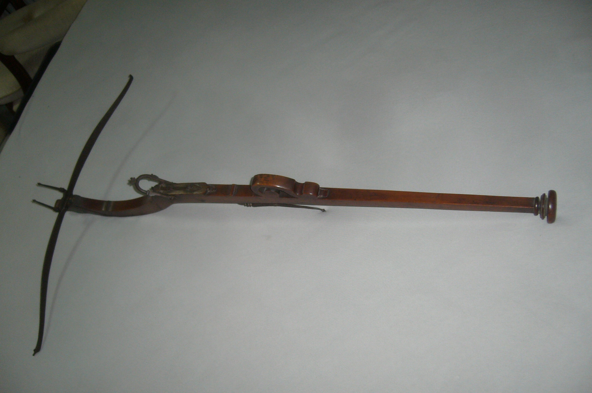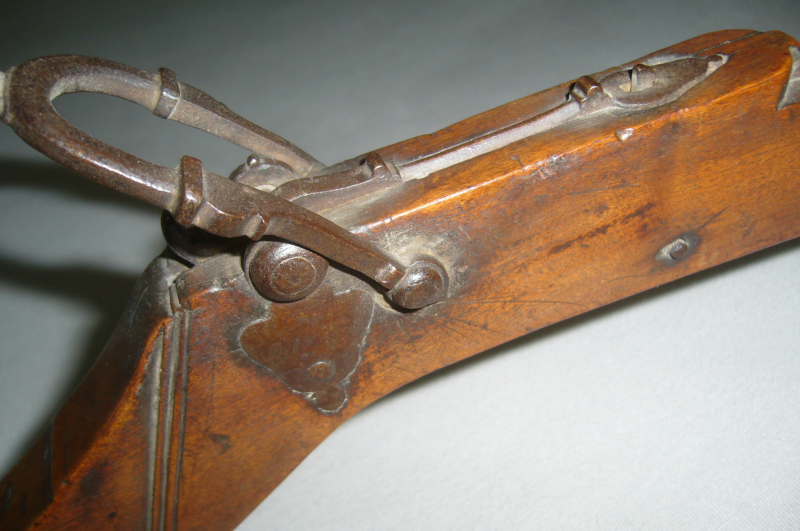 Hallo, biete eine Original Spät Mittelalterliche Armbrust Kugelschnepper, Vogelschnepper, Alter Ca. Um 1600, Vermutlich Italien, Die Metallteile sind alle Handgeschiedet, Die Schwinge hat ein Schmiedezeichen, Das Holz ist in einem alterbedingtem gutem Zustand, leider ist vorne die Halterung für die Schwinge/Bogen Defekt. Ich kann gerne auch noch Bilder per Email Senden, Habe auch noch eine Mittelalterliche Axt.
