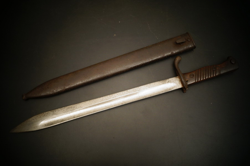 Fundzustand. Stahlscheide und Stahlklinge mit Hersteller. Holzgriffschalen.