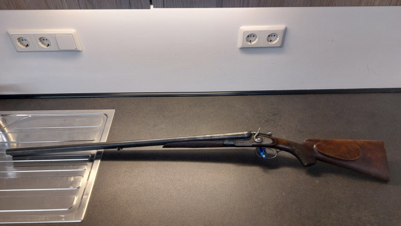 Hahnflinte Pieper Belgien 16/65. Rechter Hahn hält nicht. Verschluss undicht/wackelt. Schwarzpulver Beschuss. Lauflänge 75 cm. Schaftlänge 34,5 cm. Die Flinte wird als defekt verkauft. Schaftkappe fehlt. Weitere Fotos folgen. Versandkosten werden nach Kauf genau ermittelt. Dies ist ein Privatverkauf. Der Verkauf erfolgt unter Ausschluss jeglicher Gewährleistung und Sachmängelhaftung.