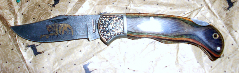 Sehr schönes Herbertz Zweihandmesser aus der Collectors Serie im Damaszener Lokk mit goldenem Bären eingelassen.