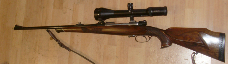 Repetierbüchse 30-06 98er System Luxusmodell Büchsenmacher Meisterarbeit Schaft mit Schuppenfischhaut ,Doppelfalzbacke ,kaisergriff ,guter gepflegter Zustand ,Lauf blank systm shöng raviert ,auf Sprungdeckeölmagazin eingelegter goldener Hirsch ,40 grad Sicherung Sonnenschliff auf Verschluss Alle Metallteile gravur eichenlaub mit Habicht swarowski 2,5-10x 56 Abs 4 ,den Leuichtturm hab ich nicht zum laufen gebracht deshalb als defekt angeboten auf saugender Suhler EHK Montage BRD Beschuss Laufl 56 cm Schaft 376cm