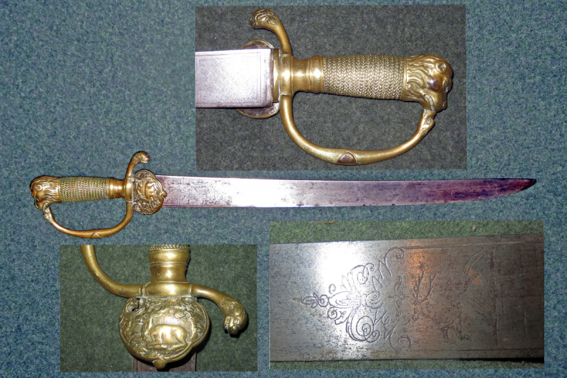 Schwerer Hirschfänger Jagdplaute Plaute mit geätzter Klinge 18. Jahrhundert