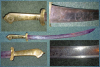Dieser ist in der französischen Form ganz aus Messing und mit den Symbolen (Sonne, Mond und Sterne) verziert, genau wie auf der Klinge, die durchgehend beidseitig geätzt ist, soweit erkennbar mit militärischen Szenen wobei, die eine Seite stark verputzt ist.