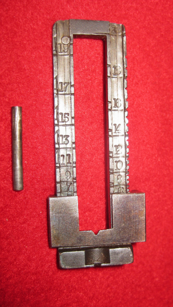 Sie bieten auf ein gut erhaltenes, orig. Visierblatt für das Gewehr 88 mit deutscher Beschriftung/Zahlen und Befestigungsbolzen. Voll funktionsfähig, schöne kaiserliche Abnahmestempel auf der Unterseite erkennbar. Zustand siehe Foto’s. Versandkosten ins Ausland sind höher. Da Privatverkauf, keine Garantie, keine Rücknahme möglich.