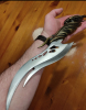 Massiver Fantasy- Dolch Sammlerstück, Dekorationstück. Dieser Dolch wird oftmals als Alien Dagger oder Shadow Slayer bezeichnet. Der Dolch hat keine Gebrauchsspuren und es ist kein Rost vorhanden. Die Klinge ist messerscharf. Gesamtlänge: 38 cm, Klingenlänge: 24 cm, Gewicht 850 Gramm. Dolchständer oder Halterung nicht vorhanden.