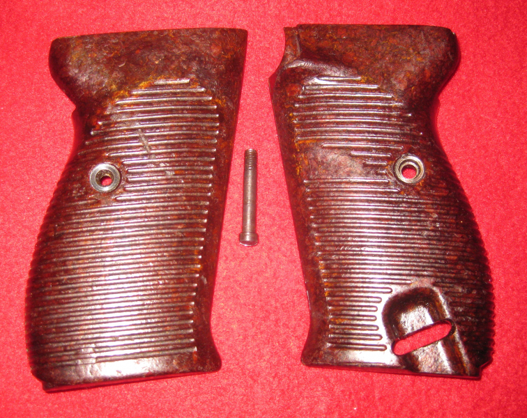 Sie bieten auf ein original rotbraunes Bakelit-Griffschalenset mit Griffschalenschraube für eine P38, Kriegsfertigung II. WK in einem sehr guten Zustand. Innenseite der rechten Griffschale gestempelt mit P 1528, darunter eine 2, linke Griffschale innen gestempelt mit P 1529, darunter eine 2. Die Versandkosten beziehen sich auf einen unversicherten Versand ohne Sendungsverfolgung innerhalb von Deutschland.