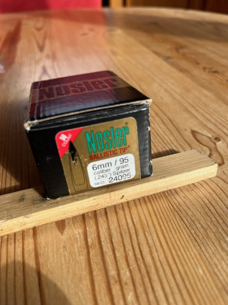 angeboten werden (gezählt) 50 Geschosse Nosler Ballistic Tip Kaliber 243, 95 grain in original Packung– unbenutzt und nicht aus Patronen gezogen.