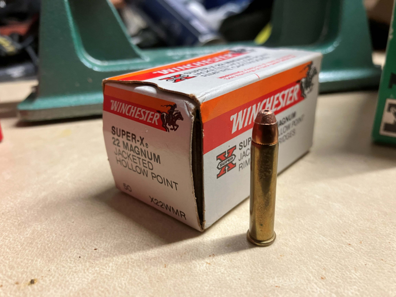 Trocken gelagerte Munition im Kaliber .22 WMR mit dem Winchester Hohlspitzgeschoss. .