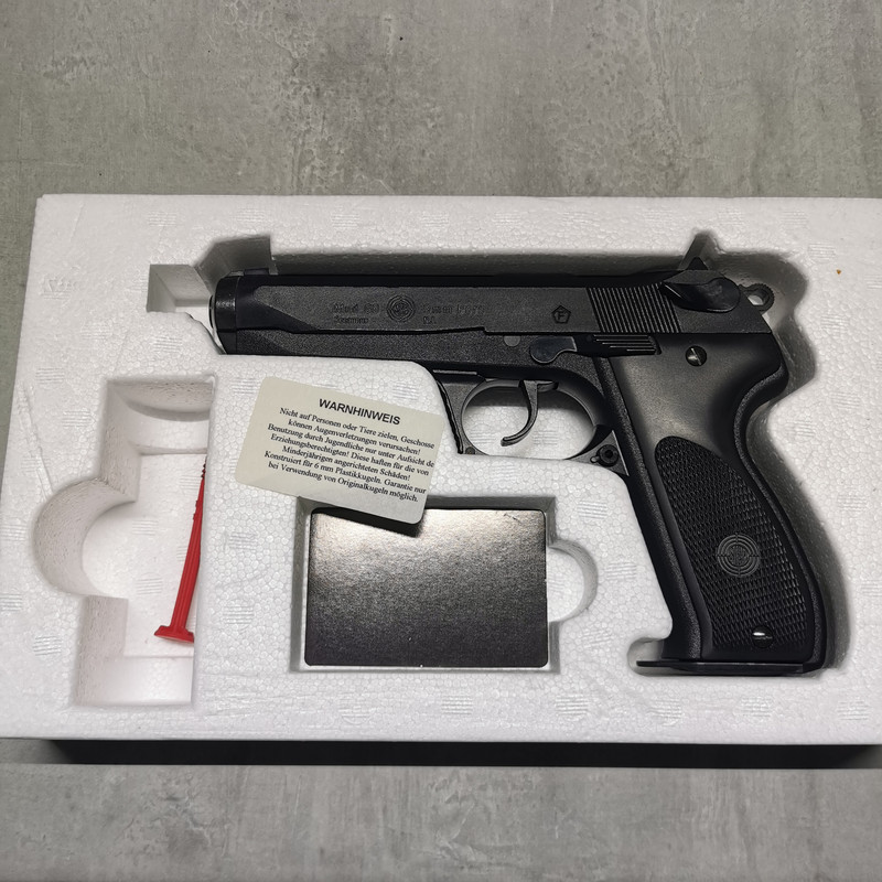 Diese NBB Airsoft ist für ihr Alter in einem guten bis sehr guten Zustand. Sie wurde noch zu DMark-Zeiten für Sammelzwecke erworben. Betrieben wird die Waffe mit Flongas und 6mm BB´s. Sie ist "dicht" und funktioniert. Es ist durch repetieren des Schlittens möglich den Hahn und den Abzug vorzuspannen. Sie trägt das "F" im Fünfeck und ist somit frei ab 18 Jahre. Altersnachweis ist erforderlich. Die Steyr wurde von Tokyo Marui in Japan gefertigt. Sie ist überwiegend aus Kunststoff gefertigt. Sie bieten auf die Waffe mit Verpackung und Gebrauchsanweisung ohne weiteres Zubehör. Den Rest entnehmen Sie bitte den Bildern. Privatverkauf, keine Garantie oder Rücknahme!
