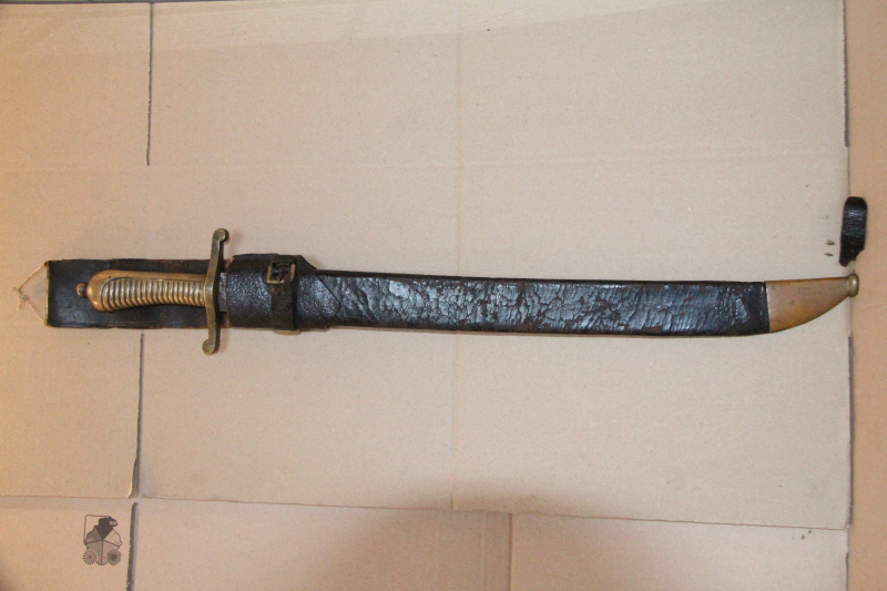 Preußisches FM mit Koppelschuh mit gerissenen Halteriemen.Klinge mit Patina unten und oben mit leicht porig ohne Kerben.Klinge geht bis auf 10mm nicht in die Scheide.Scheide getragener Zustand,Leder rissig,Naht geschlossen mit Reparaturstelle am Ortblech 40mm.Das teil ist ungestempelt der gerissene Halteriemen liegt bei.