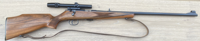 Es handelt sich um eine Repetierbüchse des Herstellers „Anschütz“, „Modell 1416“ im Kaliber .22 Long Rifle.