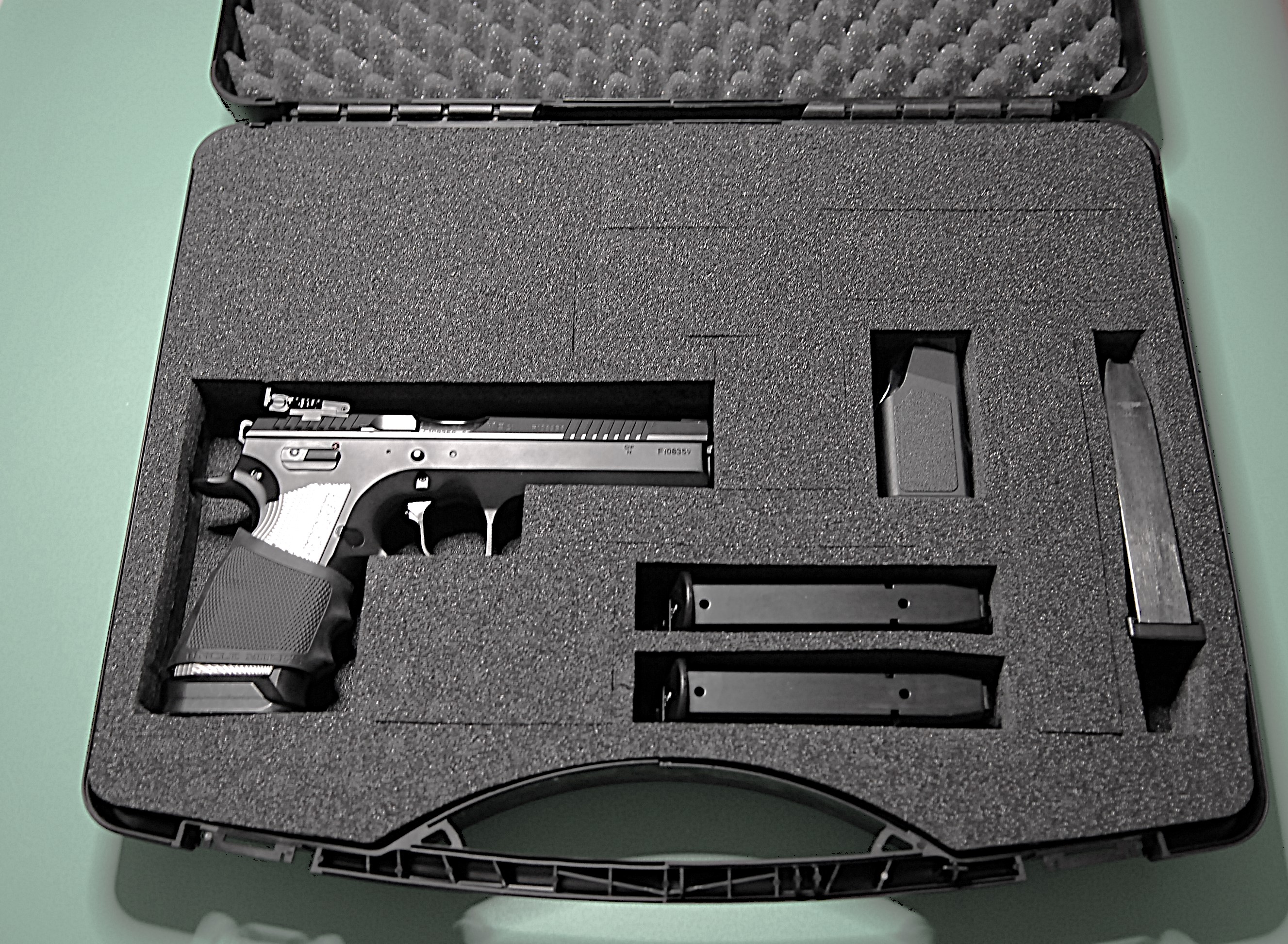Standard Abzugszüngel (Kunststoff) ist gegen leicht vorgesetztes Alu-Züngel ausetauscht worden.