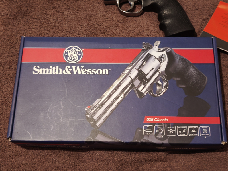 Biete einen Smith & Wesson 629 Classic 6,5 Zoll CO2 Revolver 4,5mm Stahl BB. Tadelloser Zustand ohne Gebrauchsspuren. 6 Schuss pro Patrone eine Kugel. Funktion geprüft schießt einwandfrei. Revolver kommt in original Karton und mit Bedienungsanleitung. Für Käufer aus Deutschlands Versandkostenfrei.