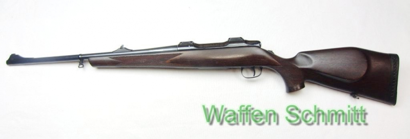 Sie bieten auf eine Repetierbüchse Sauer 90 im Kaliber 9,3x62 montiert mit EAW Schwenkmontage-Basen. 51cm Lauflänge mit verstellbarer Visierung und Mündungsbremse (Magnaport), Lauf von innen ohne Mängel. Sicherung auf dem Kolbenhals, Stützklappen-Verschluß, Direktabzug mit Rückstecher, herausnehmbares 3-Schuß Magazin, Nußbaumholzschaft mit deutscher Backe und 2,5cm Gummischaftkappe, Riemenbügel, Schaftlänge 37cm, Gesamtlänge 105cm. Sehr guter Zustand!!!