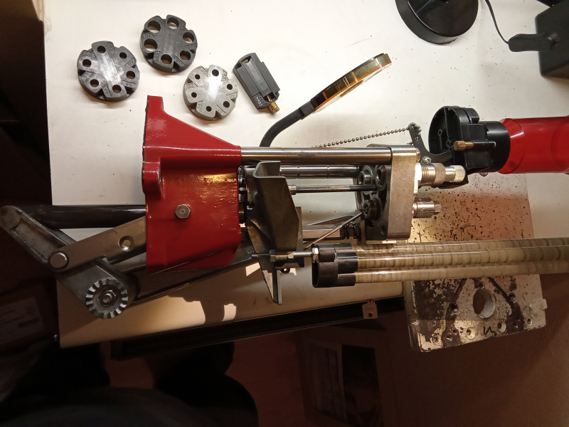 Sie bieten hier auf eine gebrauchte Ladepresse von Lee eine pro 1000 für .357 mag. Sie ist mit wenigen Handgriffen betriebsbereit. Die Bilder zeigen die Presse nach ihrem letzten Einsatz bei dem ich kürzlich noch 1000 Schuß geladen habe. Wer mit Gefühl und Übersicht ans Laden geht hat hier eine preiswerte Möglichkeit .357 mag zu laden. Habe selbst mehr als 5000 Schuß damit geladen. Dazu gehören die Matrizen, Zündhütchenteller, 4 Hülsen-röhren, 4. Pulverdosierer und ein stufenlos verstellbarer Pulverdosierer original Lee, wie im Foto zu sehen ist.