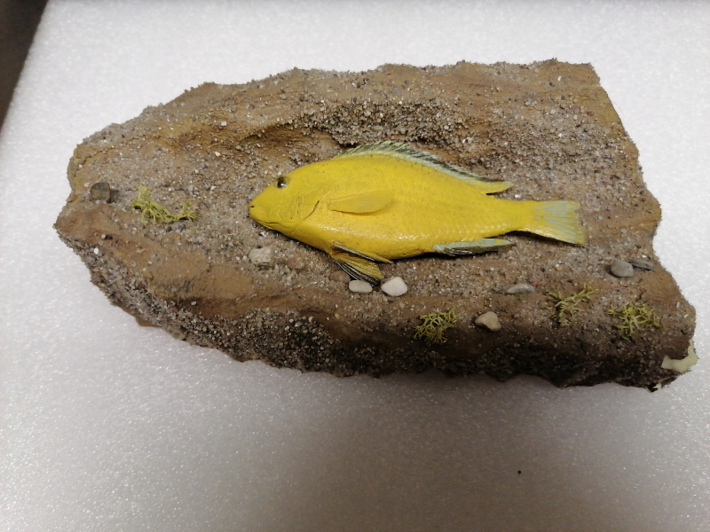 Verkaufe das abgebildete Buntbarsch Präparat in Unterwasserlandschaft.