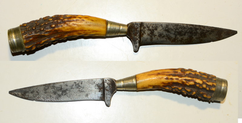 Kleines Trachtenmesser mit ca. 6,9 cm langer Klinge, ich denke Beimesser von einem identischen aber größerem Messer, auf der Klinge die Marke der Zwilling-Werke, rostfleckig