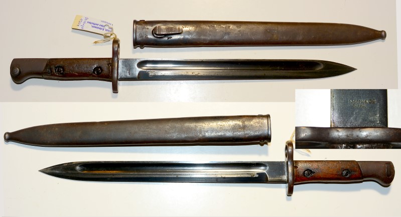 Bajonett zum Mauser Vergeiro Gewehr Modell 1904, Portugal, Hersteller Simson Suhl, Klingenlänge 28 cm, guter Zustand